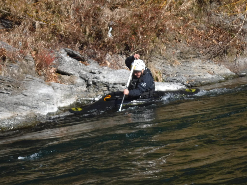僕らはトレーニングでただ川をくだるのではなく、色々な操船技術を練習します。岸から岸へ川を横断する技術だったり、流れにボートをうまくのせる練習をしたりします。練習レパートリーは無限大です。激しくなくても浅くても、考えようで、様々な練習ができます。
