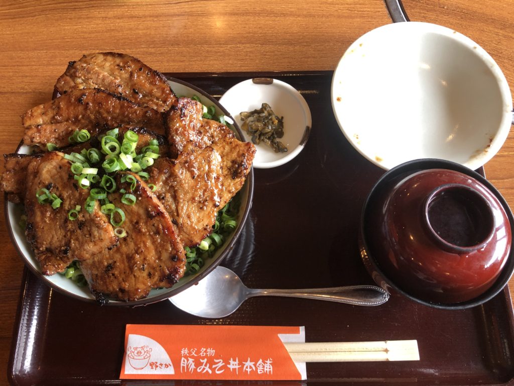 「野さか」は秩父の豚みそ丼の老舗と呼ばれているお店です。秩父では昔からおいしい味噌が作られているので、その味噌と豚を合わせた丼が名物となっています。