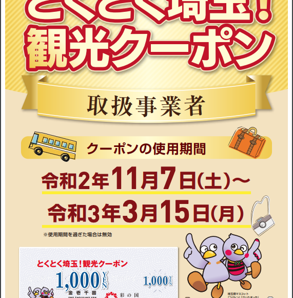 【埼玉県民対象】とくとく埼玉!観光クーポン取扱スタート!