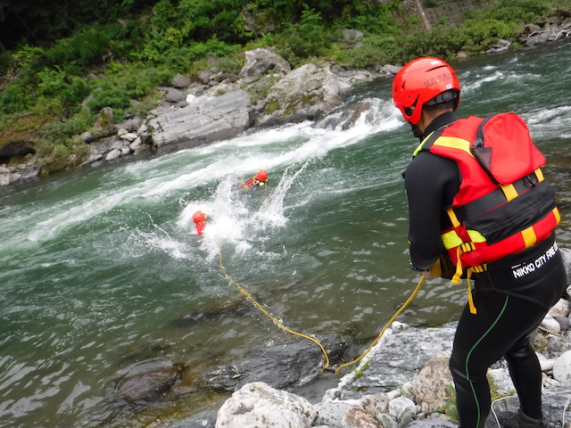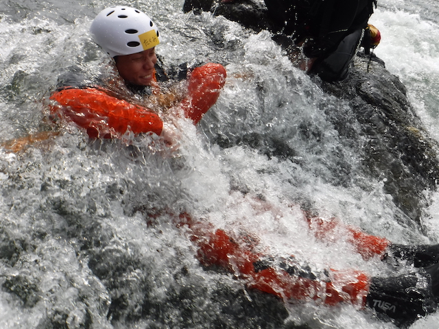 スイフトウォーターレスキュートレーニングとはスイフト=激しく動く、ウォーター=水、すなわち急流救助訓練のことです。