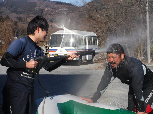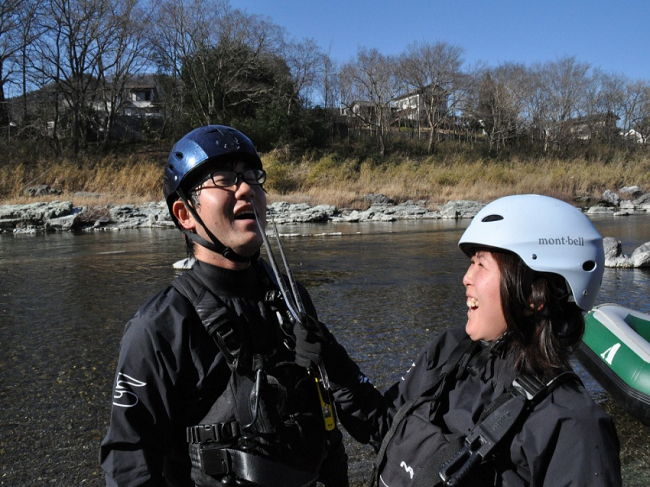 水は相変わらずかなり冷たいです!だって今日は冬至!1年で1番日が短い日。冷たいのはあたり前田のクラッカー。水に浸るとすぐにじわじわっとウェットソックスにしみてくるのでだんだん足の感覚がなくなってきます。それでもニコニコ笑顔で川をくだる僕らはもう変態です。