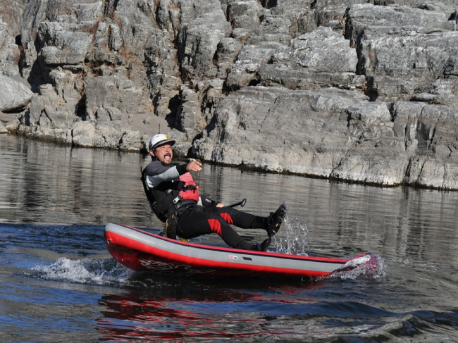 Takuは普段ラフティング以外にも水難救助の講習も行っているのですが、今日はそのレスキュー講習のためにフルオーダーしたドライスーツを初披露&試運転。
